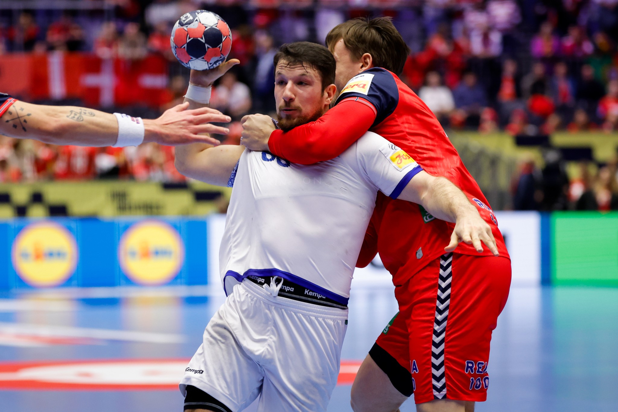 Diogo Valério rendeu Gustavo Capdeville na baliza e, com duas defesas consecutivas, permitiu que António Areia empatasse a 15-15. Após um time-out de Paulo Jorge Pereira, Luís Frade restabeleceu a igualdade a 17, mas o conjunto nórdico, com recurso a um tempo técnico próprio, marcou e levou a vantagem mínima para o descanso (17-18).