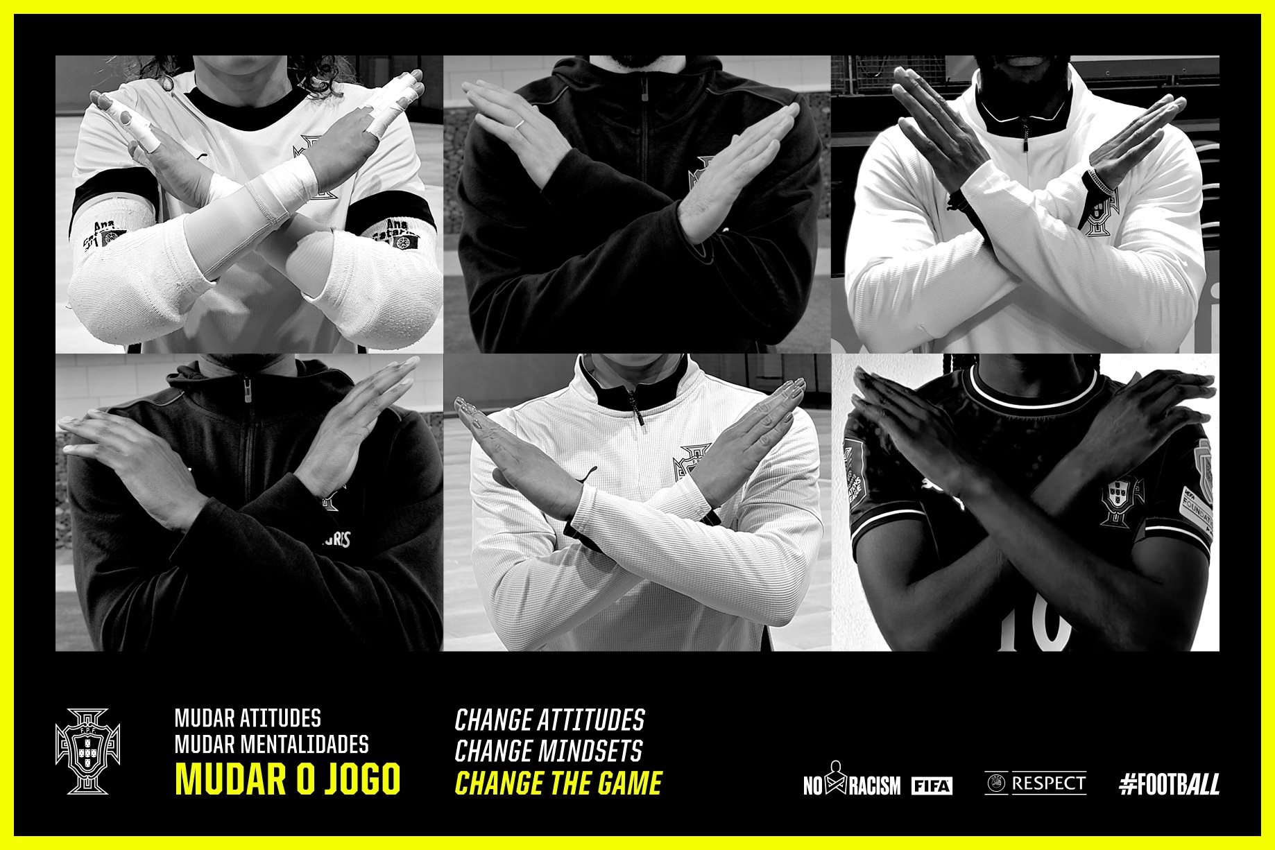 Esta campanha, como referimos, promove o gesto “No Racism”, é a forma como o atleta que foi alvo deste tipo de comportamento, sinaliza ao árbitro, ativando este os protocolos, para o jogo e exige o fim dos comportamentos racistas, deve suspender o jogo e as equipas saem de campo caso o comportamento persista e não existindo outro meio, para resolver a situação, é feita a paragem definitiva do jogo.