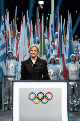 A presidente do COI transmitiu uma mensagem de união “Eu sou porque nós somos”, baseando nas próprias experiências como ex-atleta para transmitir uma mensagem impactante em Milano-Cortina.