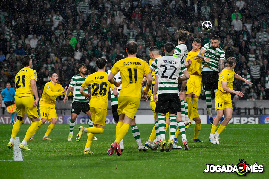 Trincão, Fresneda, Pedro Gonçalves, Maxi Araújo e Luis Suàrez foram os “pivots” da primeira fase de ataque, ainda que sem resultados palpáveis, que serviram como que para testar a formação do Bodo que, entretanto, também se aventurou algumas vezes (poucas).